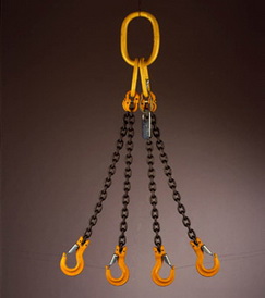 Alloy chain slings are often selected when operating under high temperatures or rugged conditions that would abrade or destroy other types of slings. The chain sling that we provided is PWB Anchor's Herc-Alloy chain. They are flexible, increased strength allows for lighter, more durable and long lasting, tougher, more reliable lifting capability, easy to inspect, collapsible for convenient storage, and will adhere securely to the contours of a load. More features of the chain slings as below: